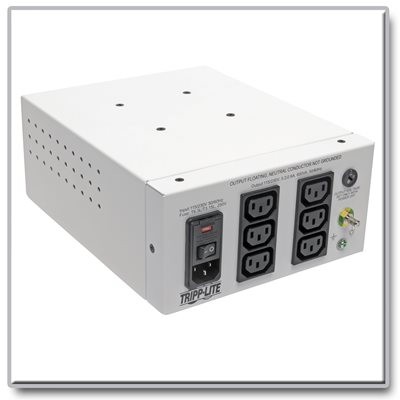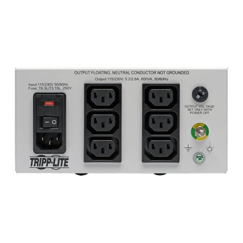 The rugged all-metal housing is designed to withstand frequent use in demanding industrial, medical, office, network and audio/video applications. Equipment plugs into six C13 outlets with fuse overload protection. A lighted on/off switch controls current to all six outlets. A C14-to-C13 input cord (sold separately) is required for connecting the transformer to AC power.