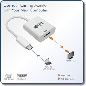 Newer tablets, laptops, Chromebook and MacBook notebooks, desktop computers and even smartphones often have only USB Type-C ports for connection to peripherals. Using a single USB-C or Thunderbolt 3 port, this Tripp Lite external video adapter connects a video source that supports USB DisplayPort Alternate Mode (Alt Mode) to an HDMI television, monitor or projector.