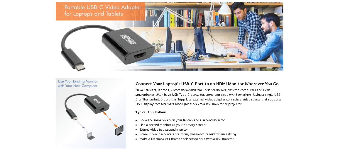 Connect your HDMI cable to the adapter, and you’re ready to enjoy digital audio and ultra high-definition video. This adapter supports USB DisplayPort Alternate Mode.