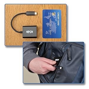 This adapter is bus-powered, so you don’t have to travel with the weight of a separate external power supply.