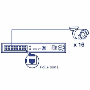 Standalone HD NVRThis standalone H.265 HD NVR supports a total storage capacity of up to 12TB and powers up to sixteen PoE network cameras (HDDs, cameras, and display not included). |