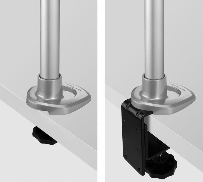 A 2-in-1 mount design gives you the option to attach the mount to your workstation via clamp or through a grommet.