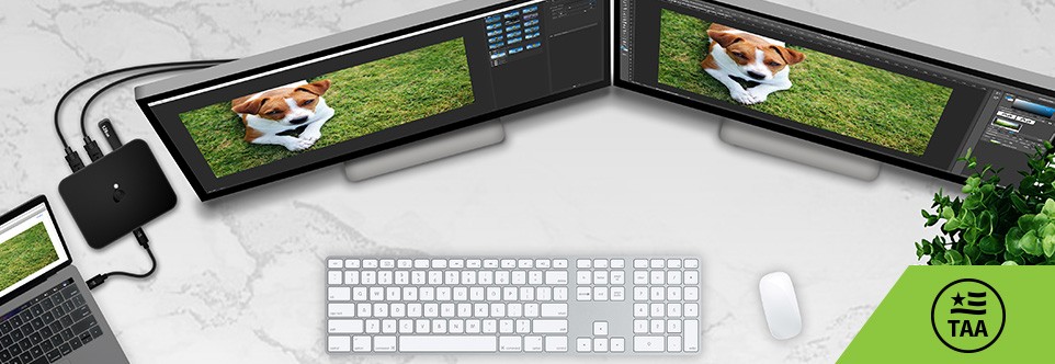 Get more out of your new USB-C or Thunderbolt 3 laptop with the USB-C to Dual HD Portable Dock. Create a dual HDMI monitor 1 workstation to expand your productivity and efficiency. The Portable Dock provides a USB type-A port for use with a keyboard, mouse, hard drive or printer and is the ideal companion for quick, easy connectivity while on-the-go.