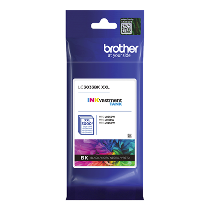 • Brother Genuine LC3033BK is for use with Brother INKvestment Tank, inkjet all-in-one printers MFC-J995DW, MFC-J995DW XL, MFC-J805DW, MFC-J805DW XL, and MFC-J815DW XL that feature Brother tank technology.