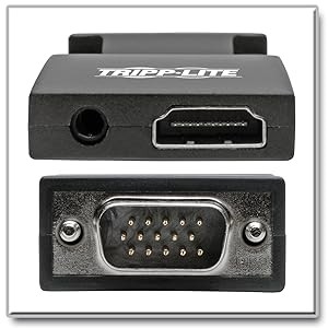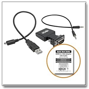 To send high-definition video to a VGA television or monitor, connect the P131-000-A-DISP directly to the display’s VGA port, and connect an HDMI cable (sold separately) between the adapter’s HDMI port and the source device. Its 1920 x 1200 (1080p) at 60 Hz picture is ideal for streaming video when you don’t want to sacrifice quality. Complete the package by connecting the included audio cable between the adapter’s audio port and the audio jack on your monitor, A/V receiver or speakers to receive stereo sound.