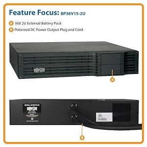 Tripp Lite’s BP36V15-2U Rack/Tower External Battery Pack extends battery runtime of compatible 36V Tripp Lite rackmount and tower UPS systems. The BP36V15-2U includes heavy-gauge cabling with a high-current DC connector for safe, simple installation. The BP36V15-2U comes with mounting accessories that support 2U rackmount installation in 4-post racks. Optional accessories are available for 2-point front-rail mounting, 2-post center-mounting, wallmount and upright tower installation.