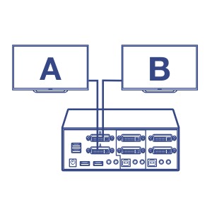 Dual monitor KVM switch designed to connect two DVI monitors with active sync replication for maximum video compatibility