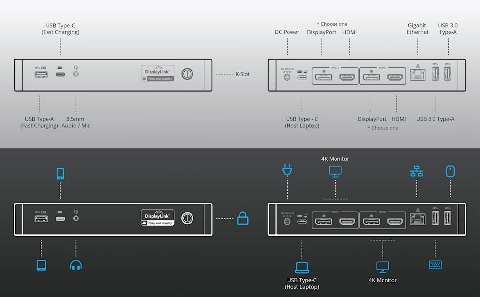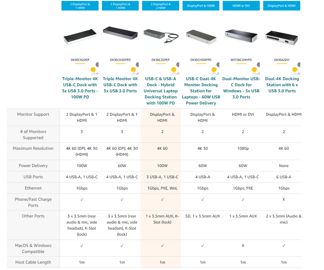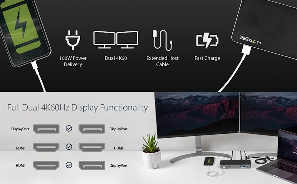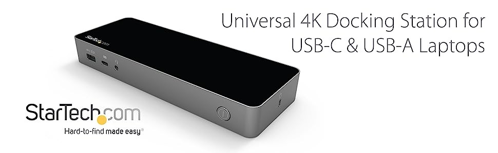 StarTech.com USB-C & USB-A Dock - Hybrid Universal Laptop Docking Station w/ 100W Power Delivery - Dual Monitor 4K 60Hz HDMI & DisplayPort
