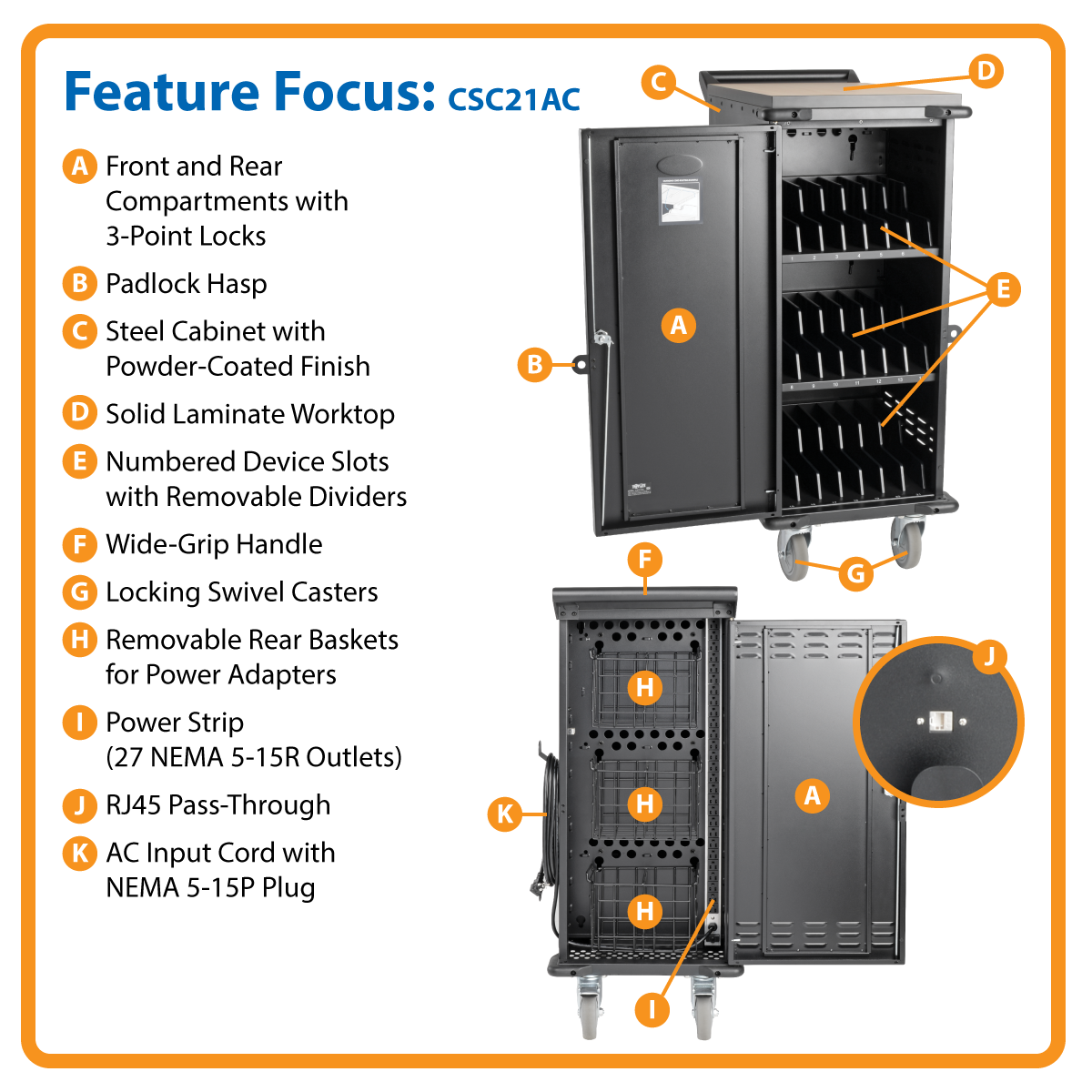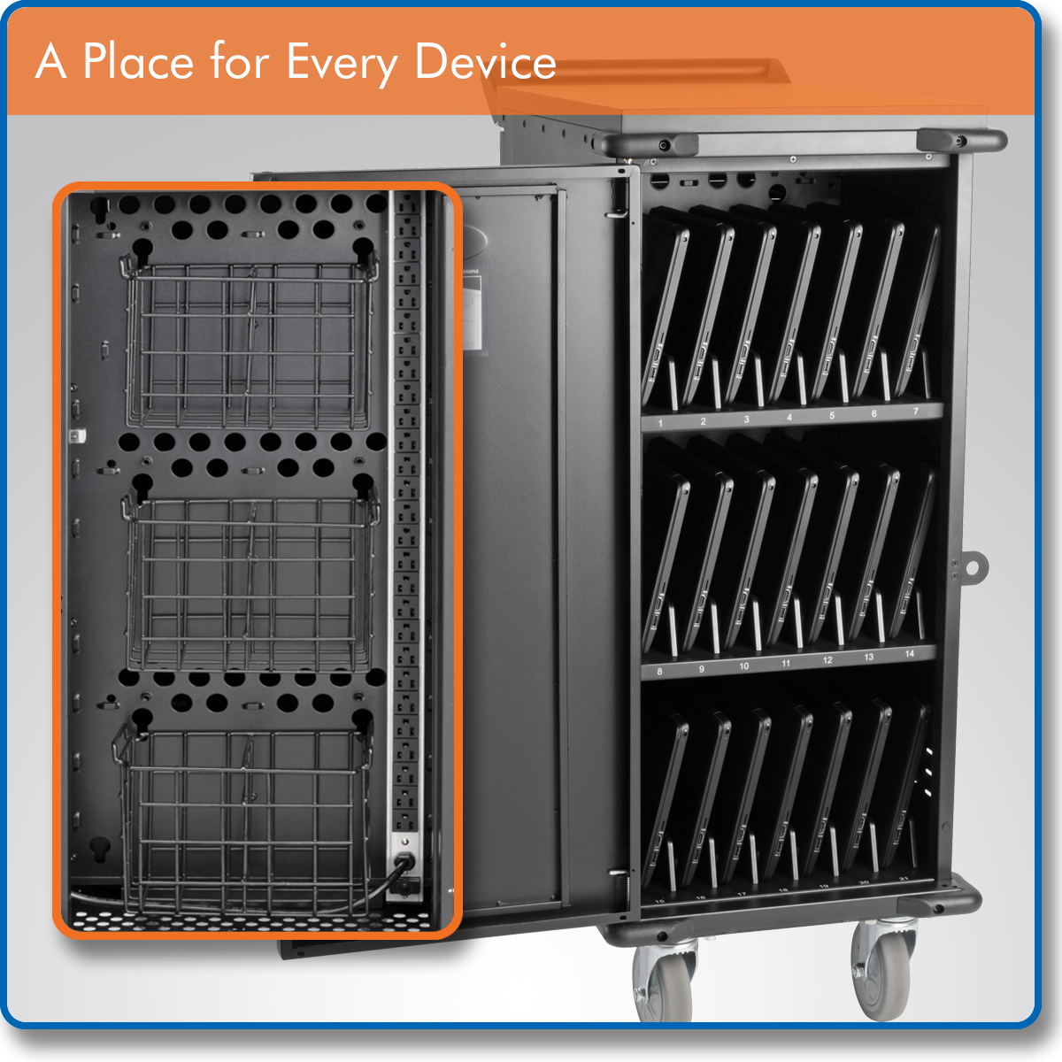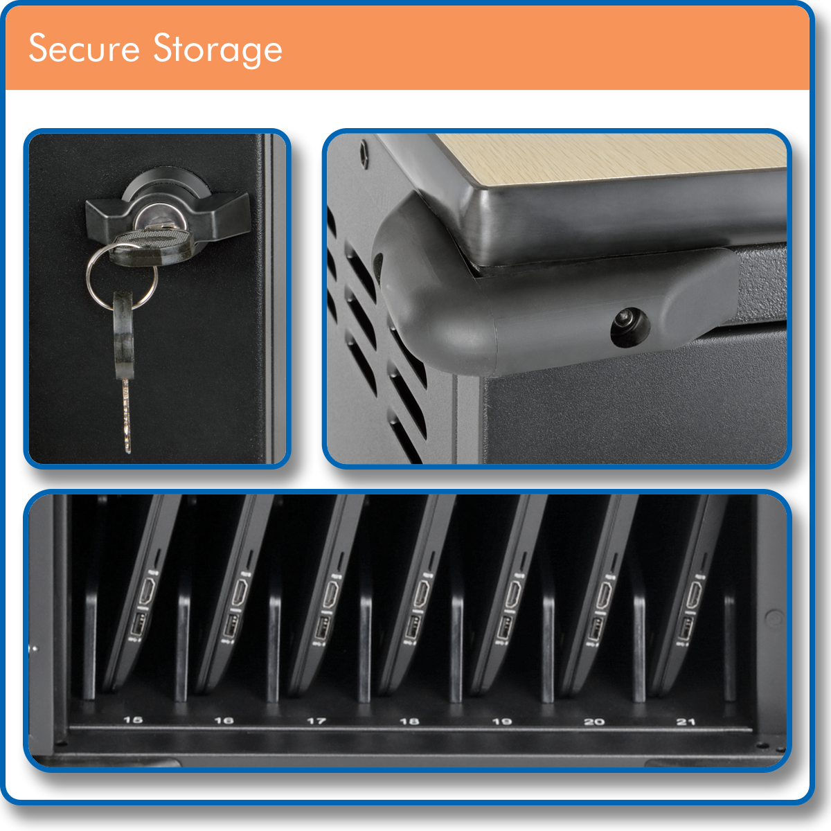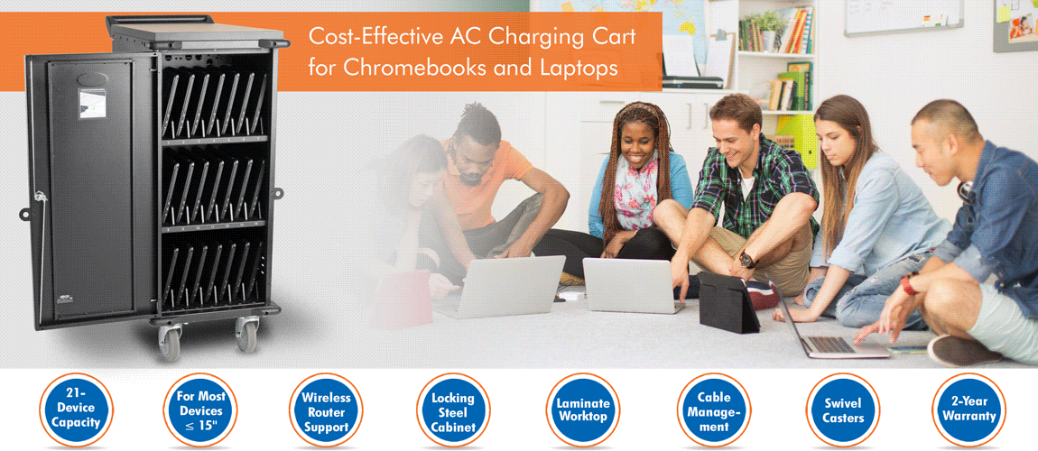 Versatile features help you meet the challenge of managing up to 21 Chromebooks, laptops or tablets in limited space.
