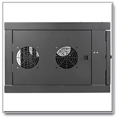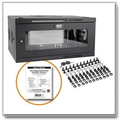 This wall-mount rack enclosure is made of heavy-duty steel with a black powder-coated finish for durability. The front door and side panels lock to help keep equipment safe and secure. A clear acrylic window in the front door allows equipment monitoring without unlocking the enclosure.