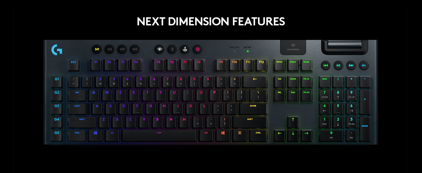 G915 is a new class of wireless mechanical gaming keyboard, featuring high-performance LIGHTSPEED wireless, advanced LIGHTSYNC RGB and low-profile mechanical gaming switches in a sleek, ultra-thin design.