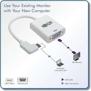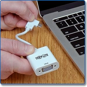 Newer tablets, laptops, Chromebook and MacBook notebooks, desktop computers and even smartphones often have only USB Type-C ports for connection to peripherals. Using a single USB-C or Thunderbolt 3 port, this Tripp Lite adapter connects a video source that supports USB DisplayPort Alternate Mode (Alt Mode) to a VGA monitor or projector.