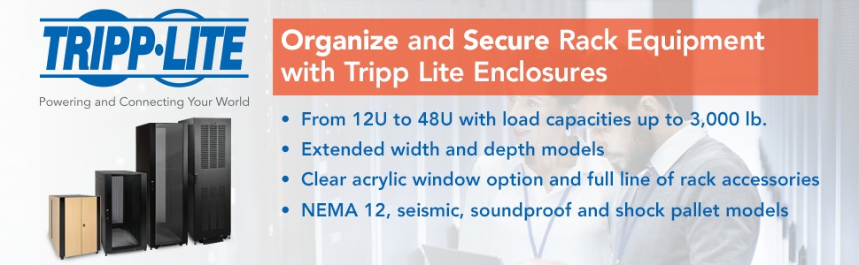 The SR14UBDP SmartRack 14U rack enclosure from Tripp Lite supports mounting of equipment up to 42 inches deep, including servers and switches. This allows high-density equipment installations, extra space for cable management and room for removing hot-swap power supplies from the rear of mounted devices. Constructed from heavy-duty steel with a durable black powder-coated finish, the SR14UBDP has a maximum load capacity of 1,000 pounds. It is designed for network wiring closets, retail locations, classrooms, back offices and other areas with essential rack-mount IT equipment.