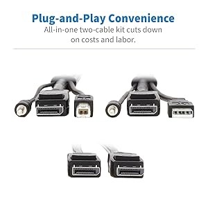 With no software required for installation and only two cables, the P783-010-DP is completely plug and play. This kit installs easily and immediately, reducing the skill level required for connecting your computer and the labor time involved in your installation.