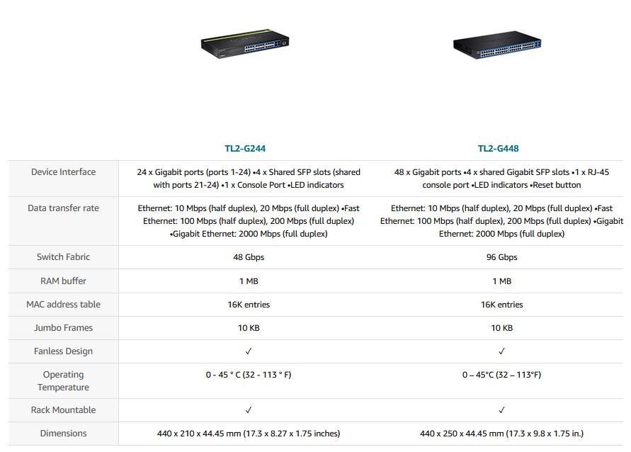 Features such as Command Line Interface, MSTP, Private/Voice VLAN, QoS, and Link Aggregation provide robust management options