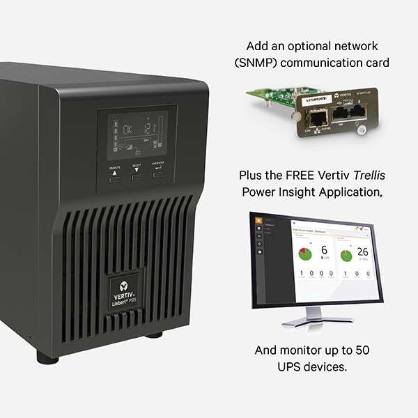 Add an optional network (SNMP) communication card, plus free Vertiv Trellis Power Insight Application