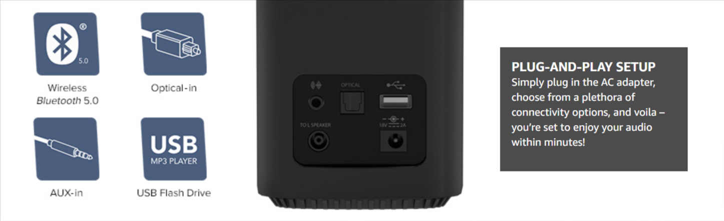You deserve better audio! The T100 is the perfect upgrade to your Echo Dot audio experience – simply connect the T100 to the smart devices via the 3.5 mm cable, and command as you usually would. Adjust volume, listen to your favorite audio book, or select your music on command – all without having to get up from bed.