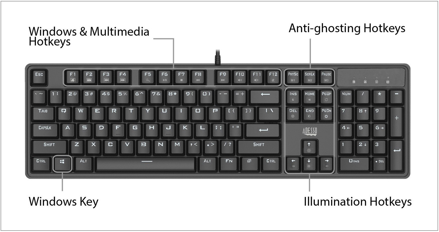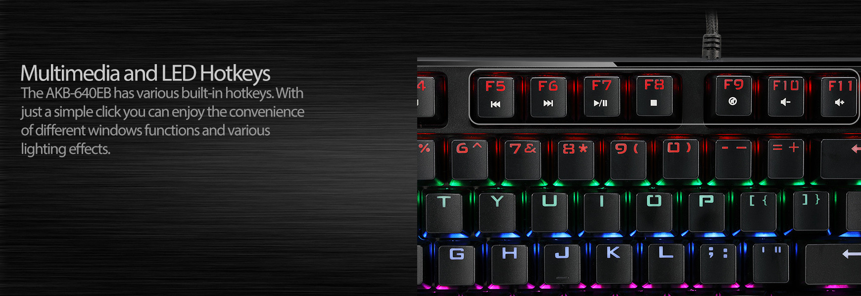 The AKB-640EB has various built-in hotkeys. With just a simple click you can enjoy the convenience of different windows functions and various lighting effects.