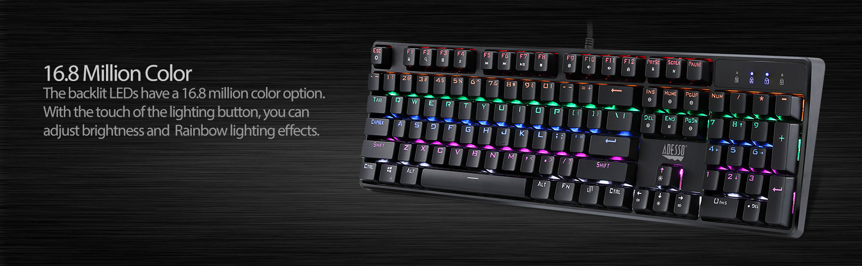 The backlit LEDs have a 16.8 million color option. With the touch of the lighting button, you can adjust brightness and Rainbow lighting effects.