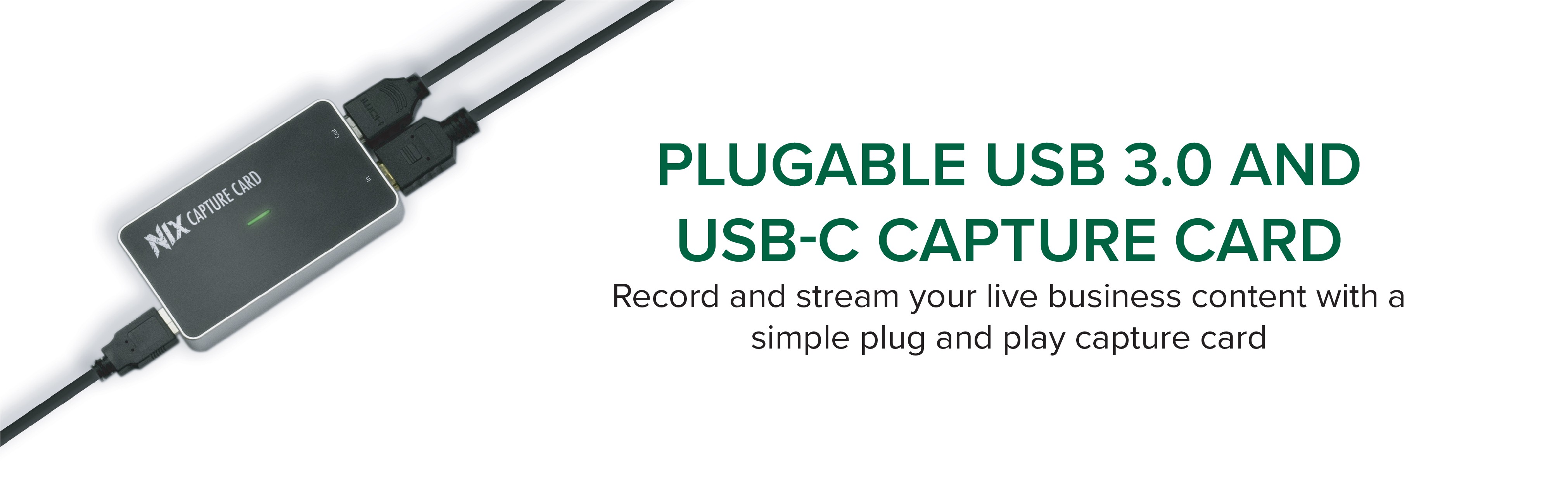 The NIX capture card includes both USB-C and USB 3.0 (USB-A) cables, so you can connect to virtually any modern Windows, macOS*, or Linux system with USB 3.0 (or higher) ports.