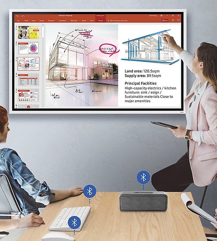 The Samsung Flip 2 allows you to connect your PC to the board remotely, meaning any meeting can be started without a PC in the room to avoid delays and help to ensure efficiency. A Bluetooth keyboard, mouse and speaker (sold separately) can also be connected to the Flip 2, creating a convenient meeting environment.
