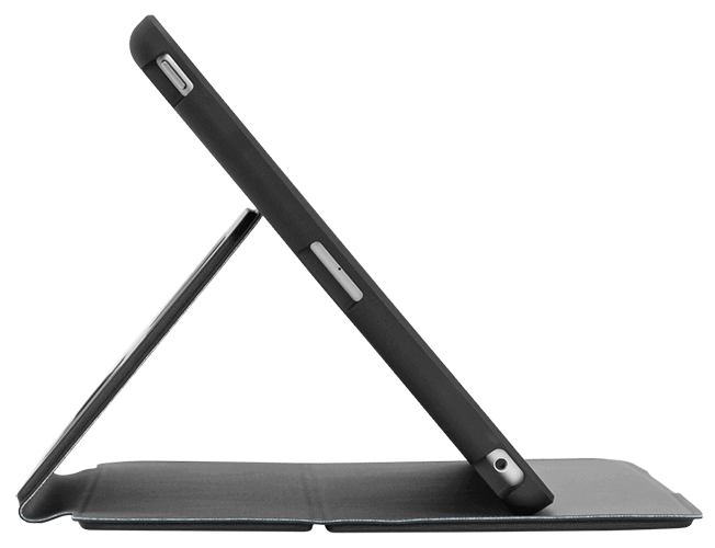 The textured, non-slip interior lets you position your iPad in an infinite range of reading or viewing angles for watching videos or interacting with your screen, or flip the cover back for a comfortable typing angle.