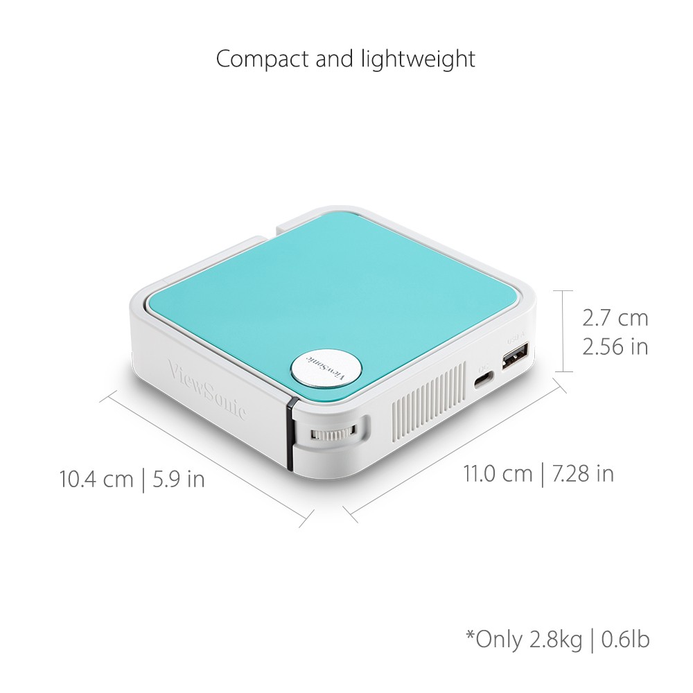 Lightweight and measuring only 4x4 inches, this compact projector can be easily packed and carried in your bag, back pocket, or in the palm of your hand. Enjoy multimedia entertainment wherever you go.