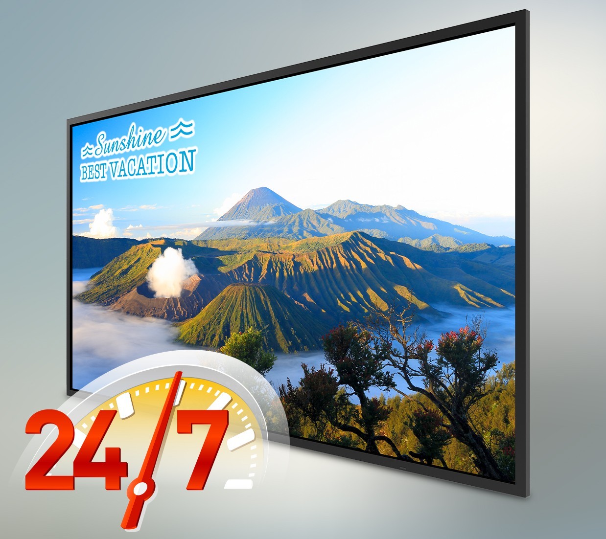 Featuring a long lifespan, this professional-grade commercial display is designed for reliable, continuous 24/7 use. This display also includes heat monitoring protection and a screen saver feature for added reliability and durability.