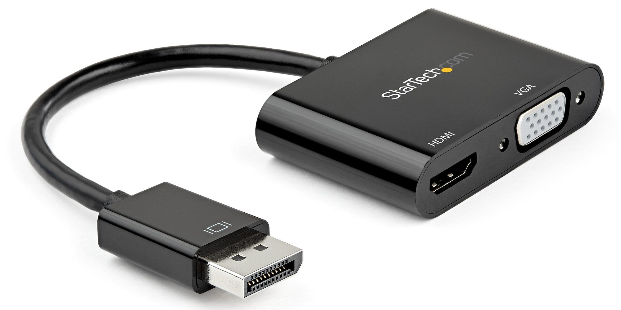 Avoid the hassle of carrying different adapters, with a 2-in-1 DisplayPort monitor adapter. Featuring both VGA and HDMI outputs, you can conveniently connect your laptop to any HDMI or VGA-equipped display, using this multiport video converter.