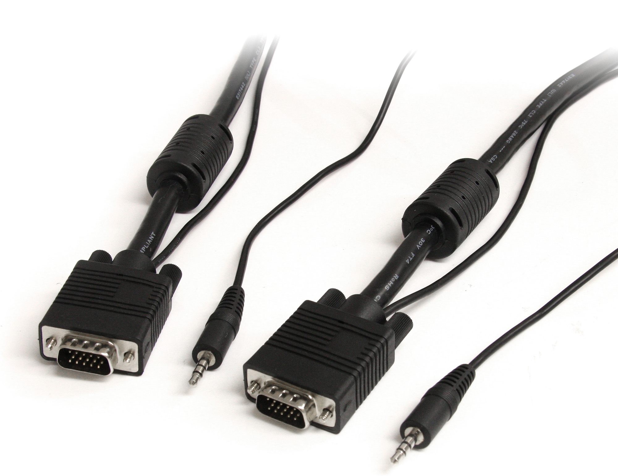 StarTech.com’s high resolution VGA cable with audio features high quality male-to-male coaxial VGA cable, and is designed to eliminate picture ""ghosting"" and fuzzy images that are inherent to non-coaxial cables, while providing superior EMI interference protection by using ferrite cores near the connector ends.