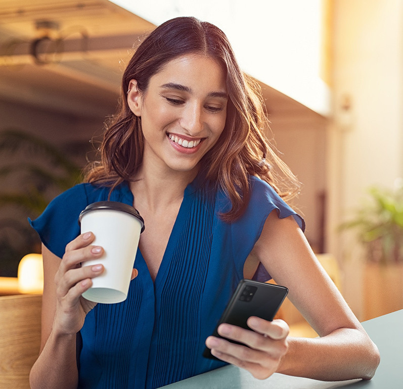 With its smooth, elegant curved-edge screen design, Galaxy A71 is beautiful to look at and fits comfortably in your hand. Its premium gloss finish makes it easy to hold, and the rhythmical pattern adds a unique touch of personality to each of its Prism Crush Black, Silver and Blue editions.