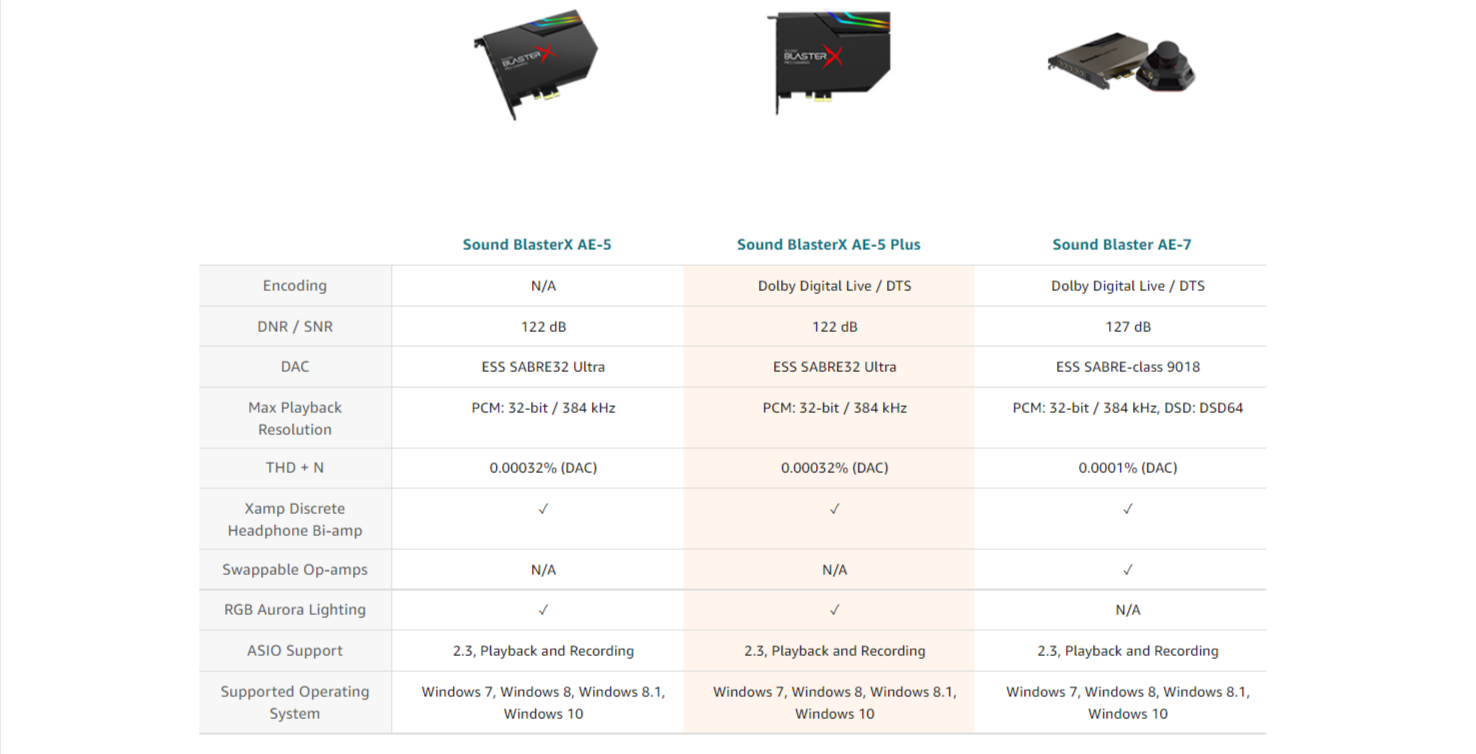 The Sound BlasterX AE-5 Plus is a SABRE32 Ultra-class PCI-e DAC which is perfect for hi-resolution audio for games, music, and movies. It delivers up to 32-bit / 384 kHz playback* with a 122 dB DNR, ultra-low distortion and jitter.