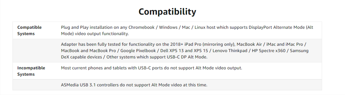 Alt Mode adapters allow you to add an additional display output easily and inexpensively on supported systems without needing to install additional software.