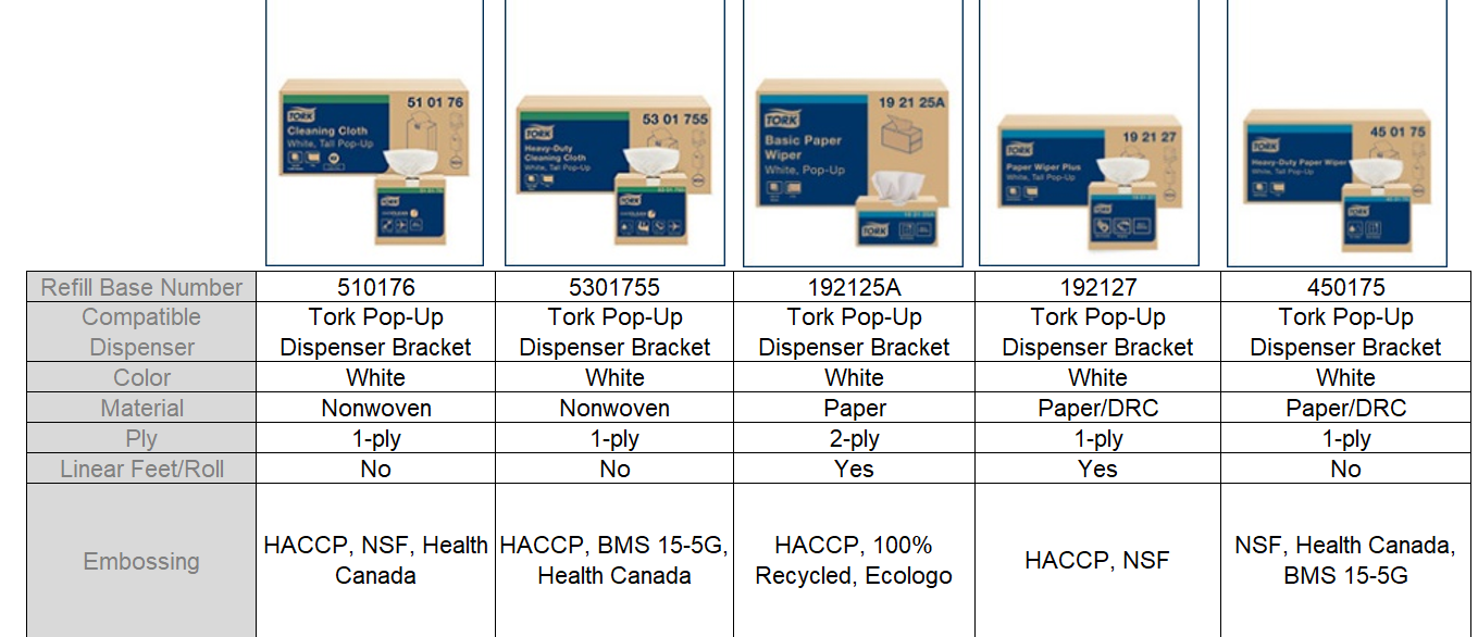 • Wipers reduce waste by up to 80% compared to standard paper towels