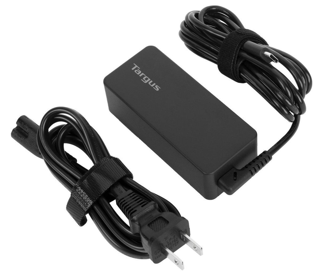 Targus 45W USB-C Charger with you –and keep your USB-C laptop, tablet, or phone fully charged*. Fast and reliable, the power adapter supports up to 45W. Compact and lightweight, it also keeps your cords from tangling and neatly stored with the included cable tie.