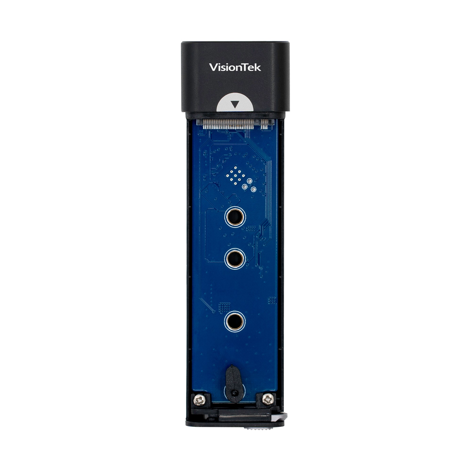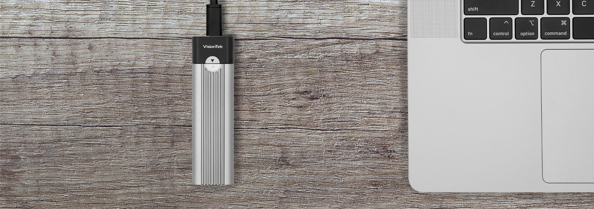 The VisionTek USB-C NVMe M.2 Enclosure allows you to connect your favorite NMVe M.2 SSD to a USB 3.1 system. The tool-less design makes swapping NMVe M.2 SSD drives simple and fast. Compatible with both Windows and Mac systems, the USB-C NVMe M.2 Enclosure is ideal for mixed system environments at the office or home. The external drive is powered via the USB-C or Thunderbolt 3 port and does not require additional drivers.