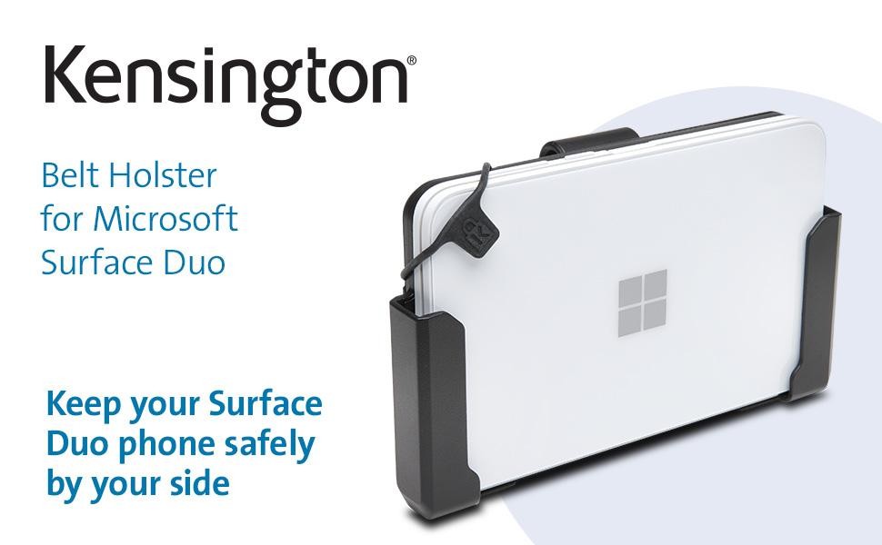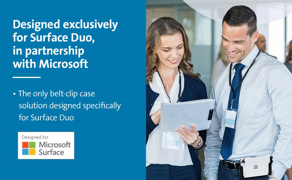 Keep your Surface Duo safely by your side with our Belt Holster for Microsoft Surface Duo. It’s the only belt-clip case solution designed specifically for the Surface Duo. Features include a horizontal “drop-in” design that fits comfortably against your waist; a safety tab that keeps the device firmly in place, with or without its protective bumper, yet allows easy access when you need it (use of tab is required when bumpers are not installed); and durable polycarbonate material that’s as stylish as it is tough.