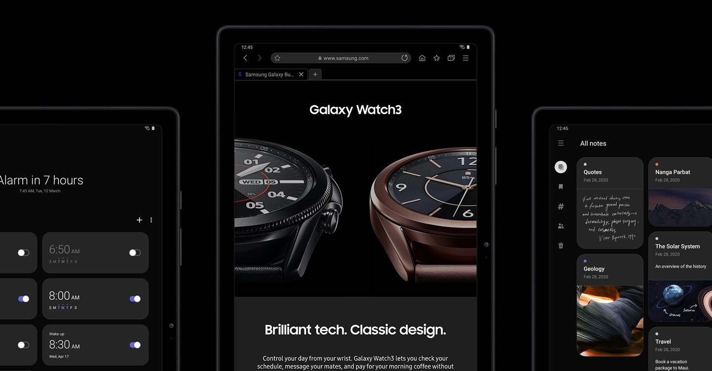 Galaxy Tab A7 is built to impress—a true head-turner that offers great immersive experiences. With beautiful symmetry and a thickness of just 7mm, it features a sophisticated metal design in three colours, Dark Gray, Silver, and Gold, and a symmetric bezel all the way around.