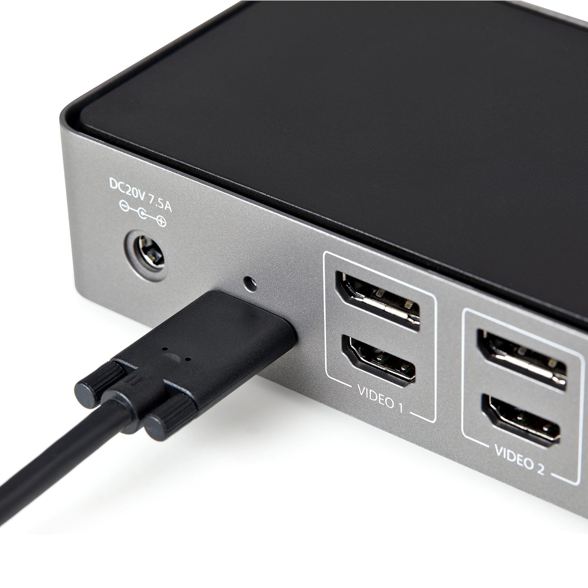 This USB-C Gen 2 10Gbps docking station turns your USB-C ® or Thunderbolt™ 3 MacBook Pro, Windows laptop, and Chromebook into a powerful workstation. A USB 3.2 Gen 2 Type-C dock features everything you need, from triple HDMI or DisplayPort video outputs up to 4K 60 Hz to 10Gbps USB-C & USB-A downstream peripheral ports to 85W Power Delivery.