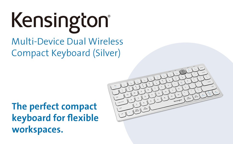 The perfect keyboard for flexible workspaces, the Multi-Device Dual Wireless Compact Keyboard lets you connect and switch between up to three devices at a time (computer, tablet, or phone), using Bluetooth (3.0 or 5.0) or 2.4GHz wireless with 128-bit AES encryption. Smooth, responsive scissor keys include multimedia hot keys. Windows, macOS, iOS, and Chrome OS compatible. Low battery indicator, so you’re never caught off guard. Includes two AAA batteries.