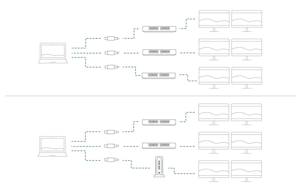 Multiple DisplaysEquipped with HDMI 2.0 and DP 1.2 ports, our adapter allows you to mix and match display connections so it can fit your workstation needs. Please note, only two external displays supported. If two displays are already connected the unoccupied video output ports on the adapter will not be able to output video. |