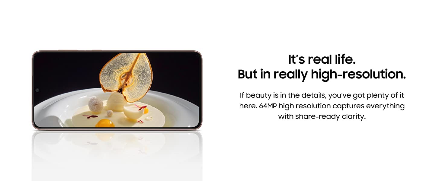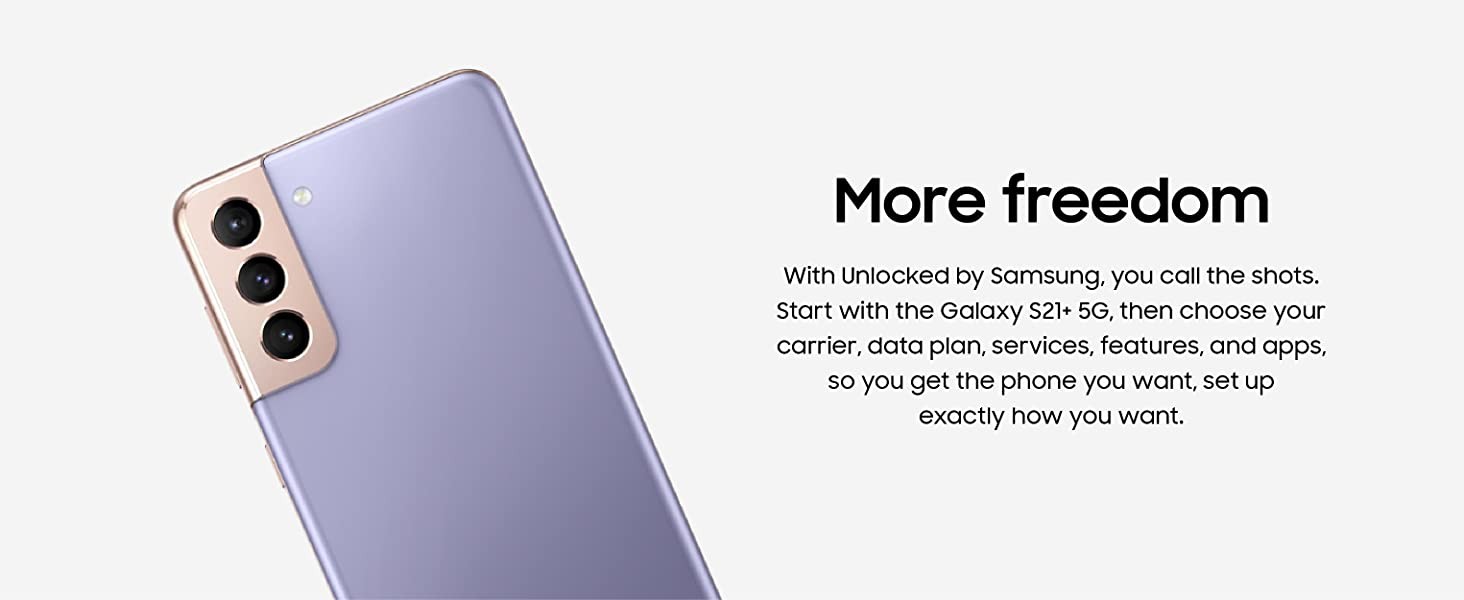 Never miss that perfect shot again. Meet Galaxy S21+ 5G. Designed to revolutionize video and photography, with beyond cinematic 8K resolution so you can snap epic photos right out of video. It has it all: 64MP, our fastest chipset and a massive all-day battery. Things just got epic.