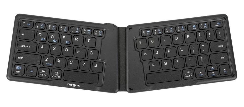 If you’re looking for innovative design and quality craftsmanship, Targus delivers. With our wireless folding keyboard, you get a lightweight, pocket-sized device that offers an ergonomic, split-keyboard design, convenient device connectivity, reliable and battery-saving wireless Bluetooth 5.1 technology, and a rechargeable 100 mAh battery that allows you to work for hours at a time. Choose our foldable ergonomic keyboard to complement your workflow on the go.