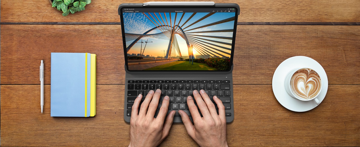 Enjoy using your iPad Pro at night or in dim lighting? Backlit keys with adjustable brightness levels ensure you see what you’re doing in the bedroom, on a plane, or any other low light environment