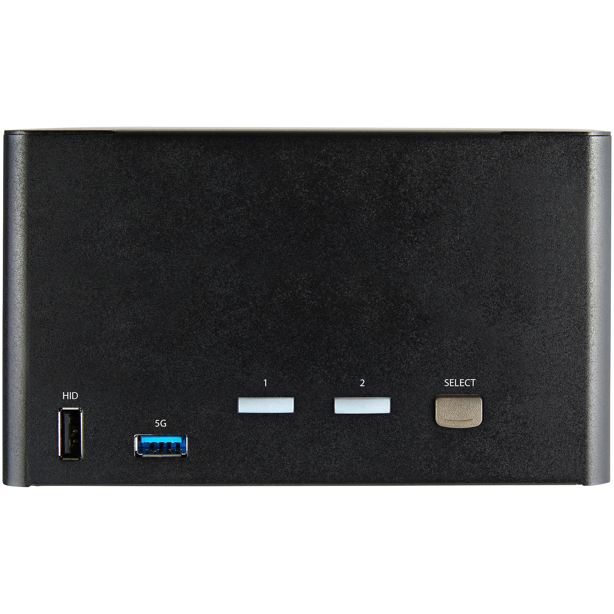 This 2-port KVM switch combines 4K (60Hz) digital display capabilities with control of two connected computers.