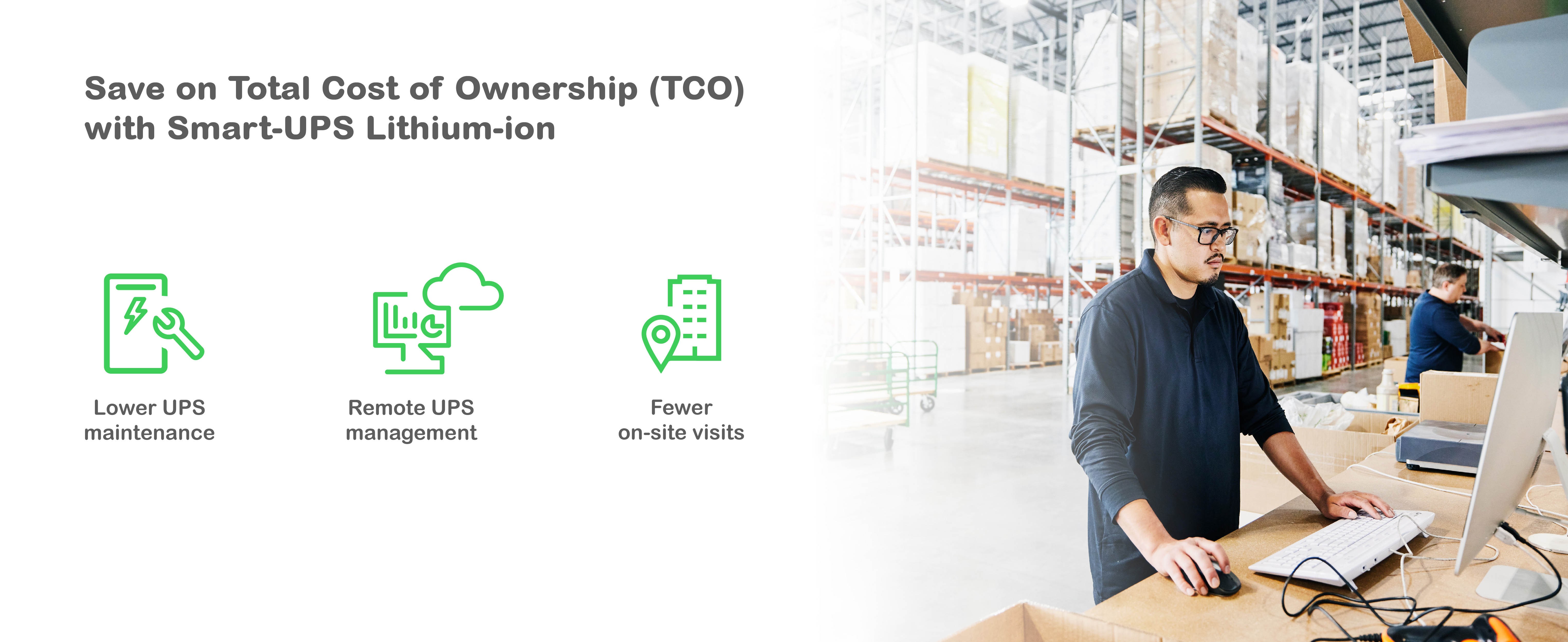 The Lithium-ion batteries used in Smart-UPS can last 8 to 10 years or 3000 charge/discharge cycles. Valve Regulated Lead Acid (VRLA) batteries typically last 3 to 5 years or 200 discharge cycles.