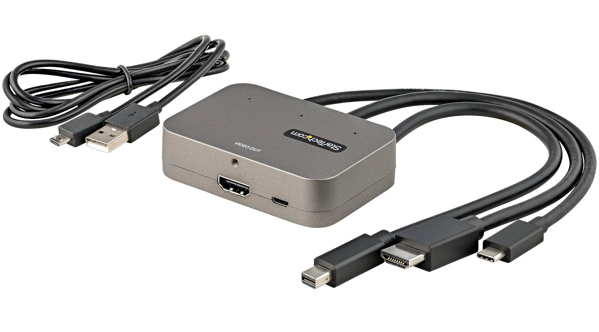 This multiport to HDMI adapter provides multiple host options, connecting your USB-C™; HDMI® or Mini DisplayPort™ device to an HDMI display. This digital AV adapter supports High Dynamic Range (HDR) and provides sharper images with enhanced video.