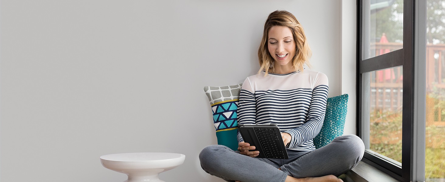 Forget about cramped on-screen typing. Now you can type quickly and accurately in comfort with a familiar laptop-like keyboard featuring large, well-spaced keys
