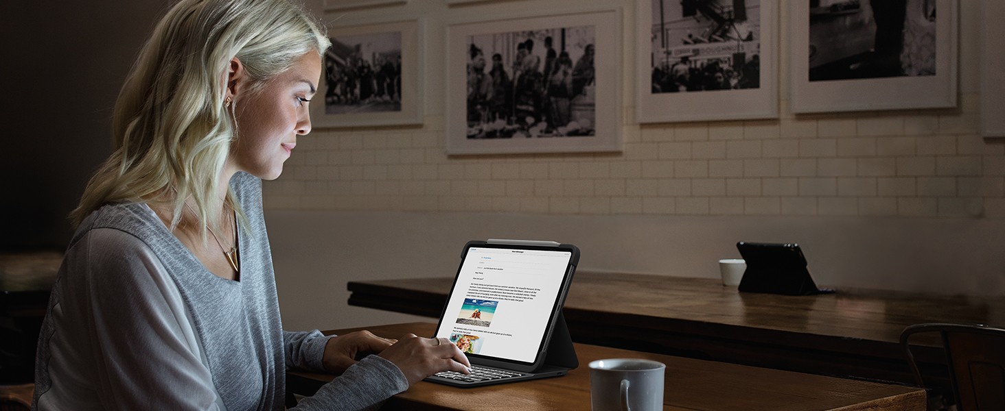 Enjoy using your iPad Pro at night or in dim lighting? Backlit keys with adjustable brightness levels ensure you see what you’re doing in the bedroom, on a plane, or any other low light environment