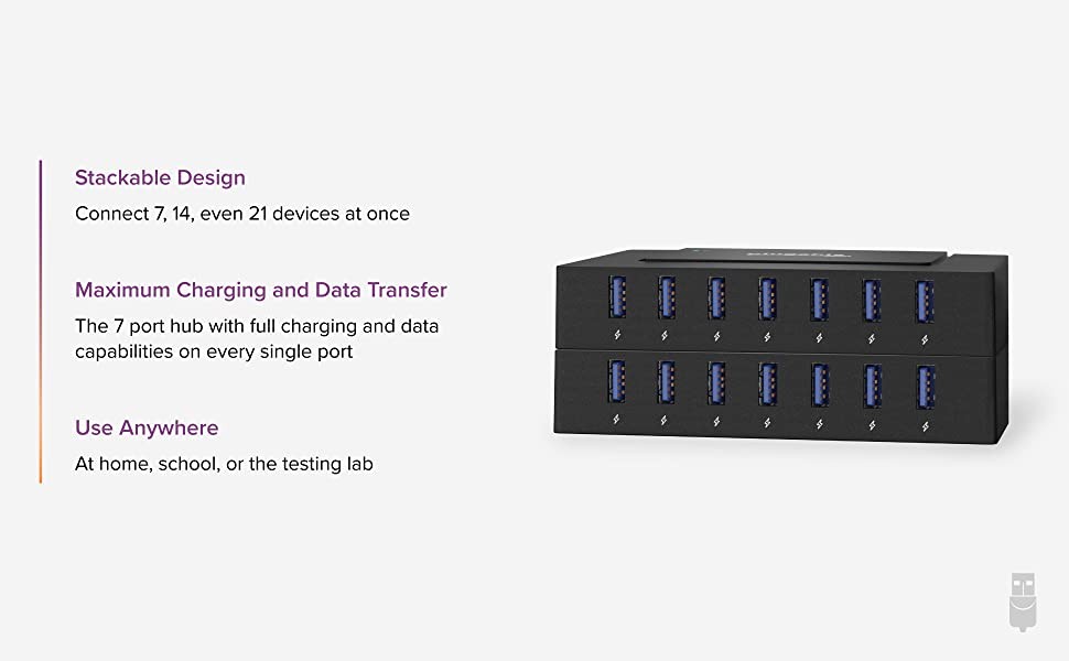The USBC-HUB7BC centralizes your charging efforts. At home, set it up as a community charging spot for phones and tablets. At school, combine two or three to easily charge and sync student devices. And in large-scale operations, deploy as many hubs as you need to test and charge at scale.